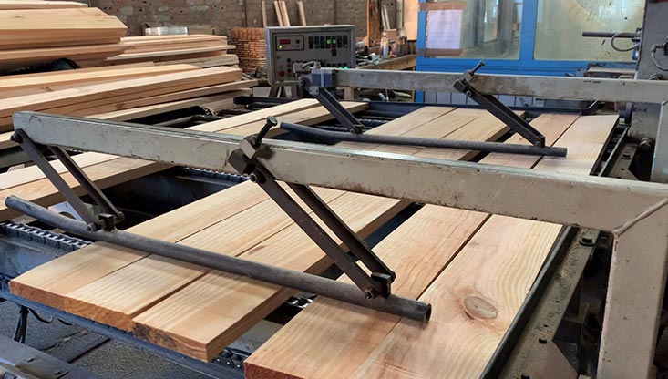 Les bois de bonne qualité sont distribués dans l'atelier de rabotage constitué de machines hydrauliques pour la fabrication de parquets, lambris, plinthes moulures et lames de terrasse.