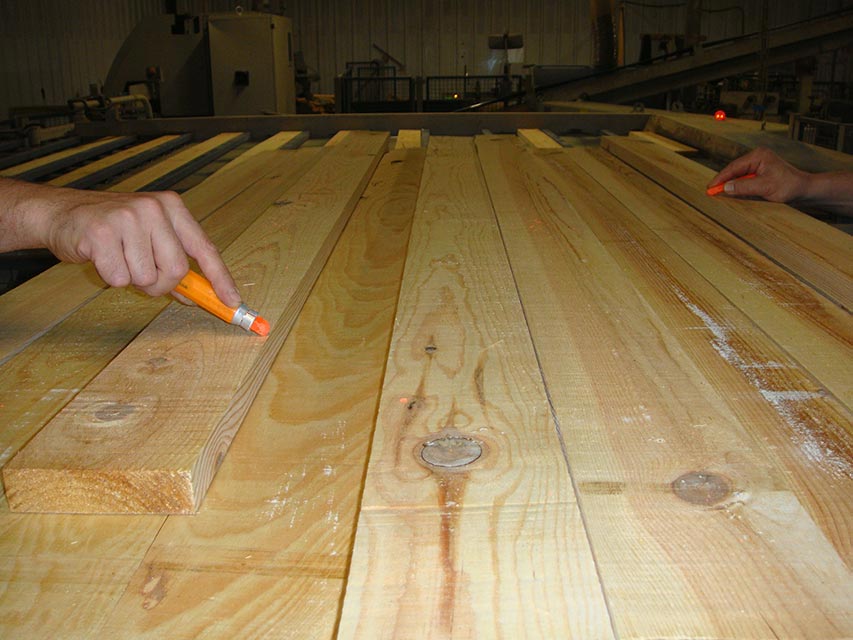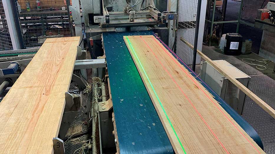 Les bois sont ensuite délignés grâce à une machine laser permettant un respect optimal de la matière. Les frises sont triées par qualité.