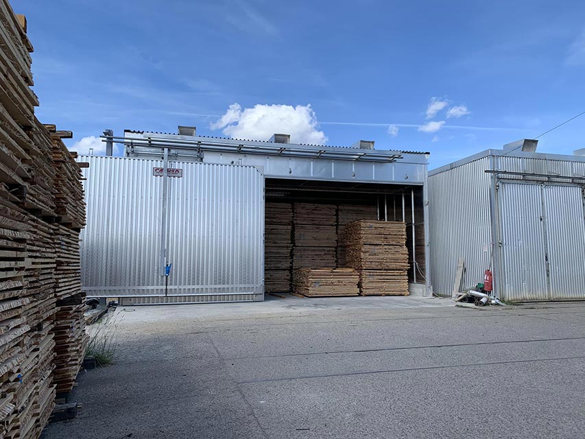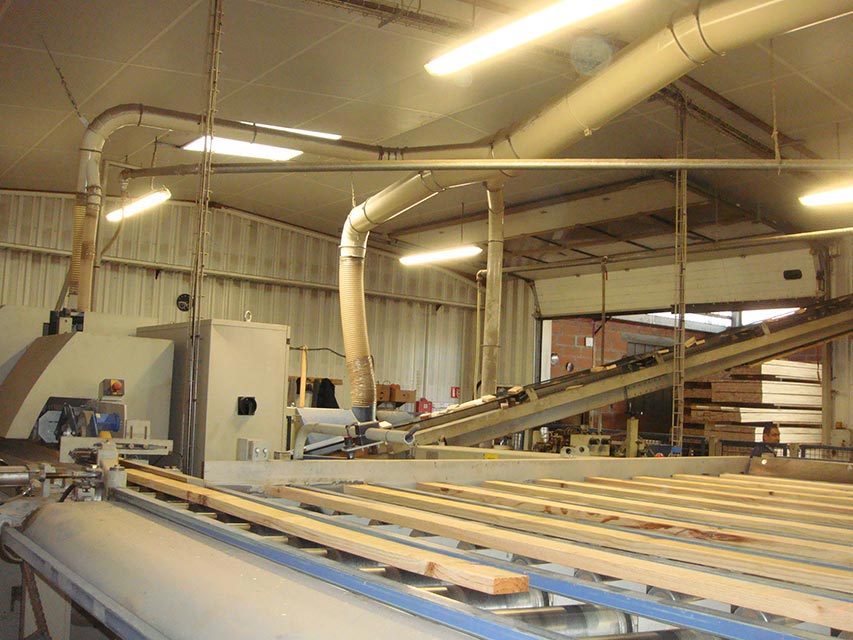 Notre processus de séchage et lui aussi écologique puisque nous récupérons les copeaux et la sciure que nous générons pour fabriquer nos produits finis. Ils sont aspirés dans un circuit pour ensuite être brûlés dans une chaudière biomasse qui chauffe un circuit d’eau permettant le séchage du bois dans les séchoirs.